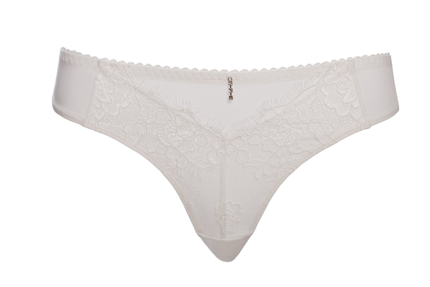 String en maille et dentelle “EYELASH”, doublé de Coton sur le devant. Trois strass sur le devant. Fond doublé 100% coton.